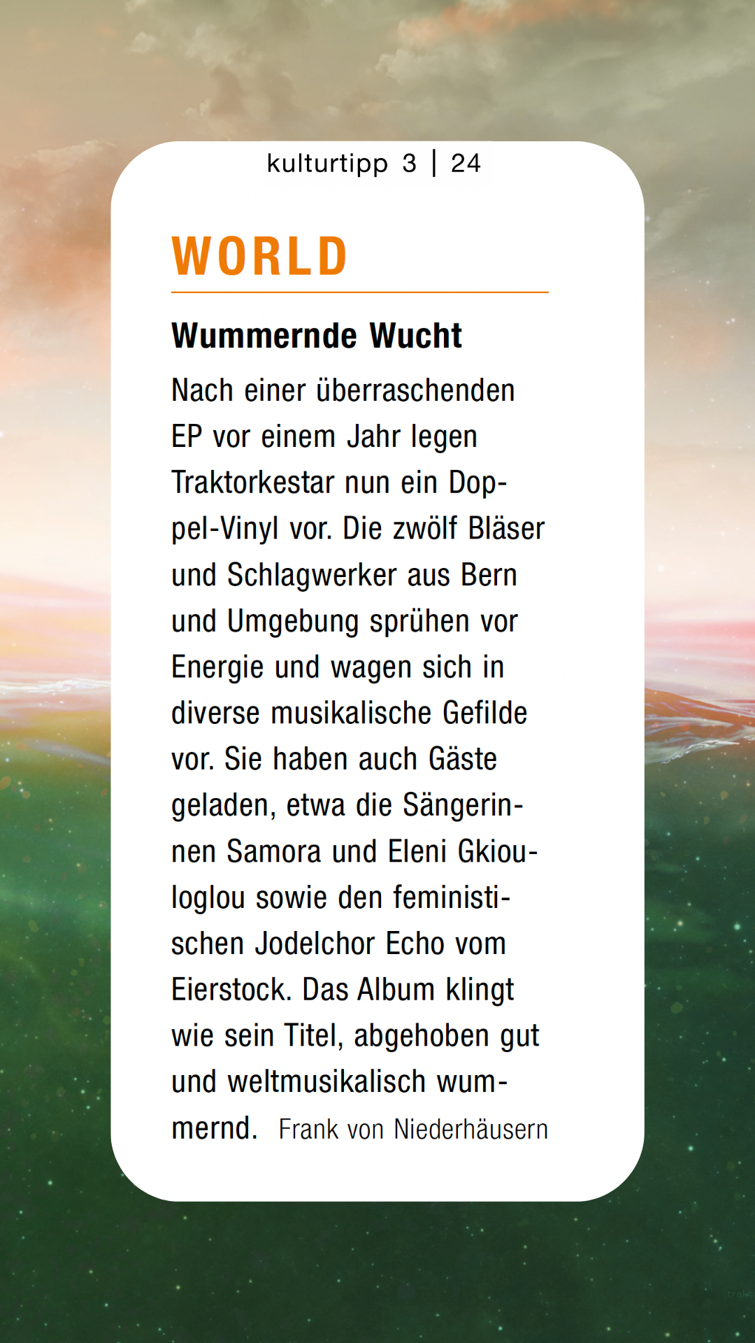 Wummernde Wucht Kultur-Tipp CH - Jan 2024